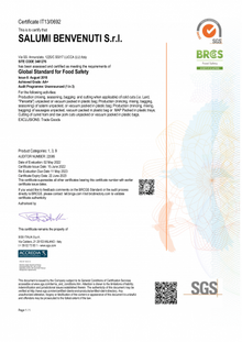 Il Salumificio Benvenuti adotta un programma di autocontrollo della produzione basato sul sistema HACCP in conformità al Reg. CE n. 852 – 853/2004 e successive modifiche ed integrazioni. Integra il programma di autocontrollo con le certificazioni volontarie BRC (British Council Certification) e IFS (International Food Standard). In qualità di socio e produttore del Consorzio della Finocchiona I.G.P. è inoltre soggetta al controllo di IFCQ per conto del Consorzio stesso. E’ infine presente nel Prontuario degli Alimenti AIC (Associazione Italiana Celiachia Spiga Barrata) avendo una gamma di salumi senza glutine.